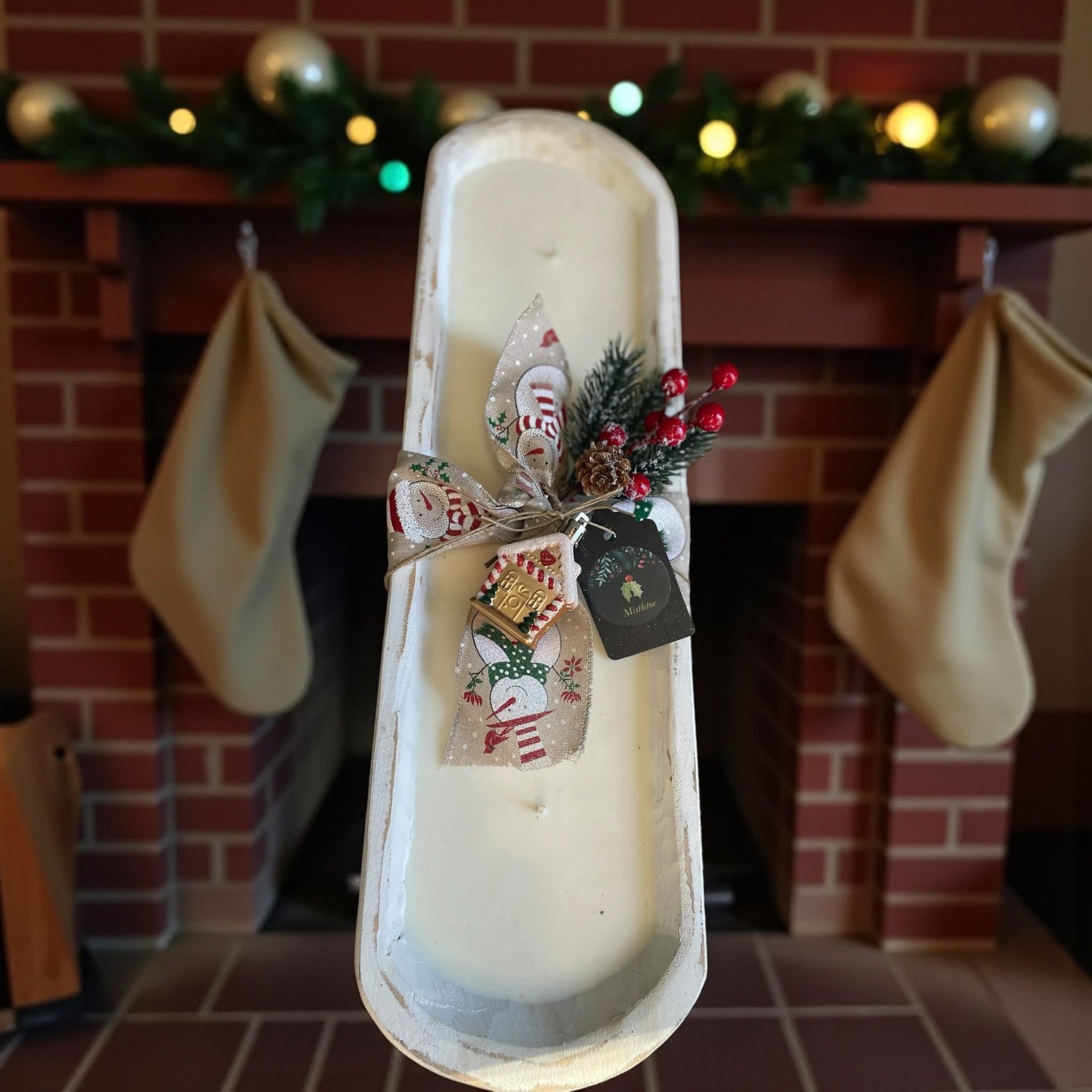Discover the charm of our handcrafted dough bowl candles, where artistry meets ambiance. Each bowl is individually selected and adorned with seasonal ribbons and decorative touches that complement its natural character. Because every bowl is handmade, each piece tells its own story—no two are ever identical. This bowls holds 24oz of your favorite candle and is one of our largest.