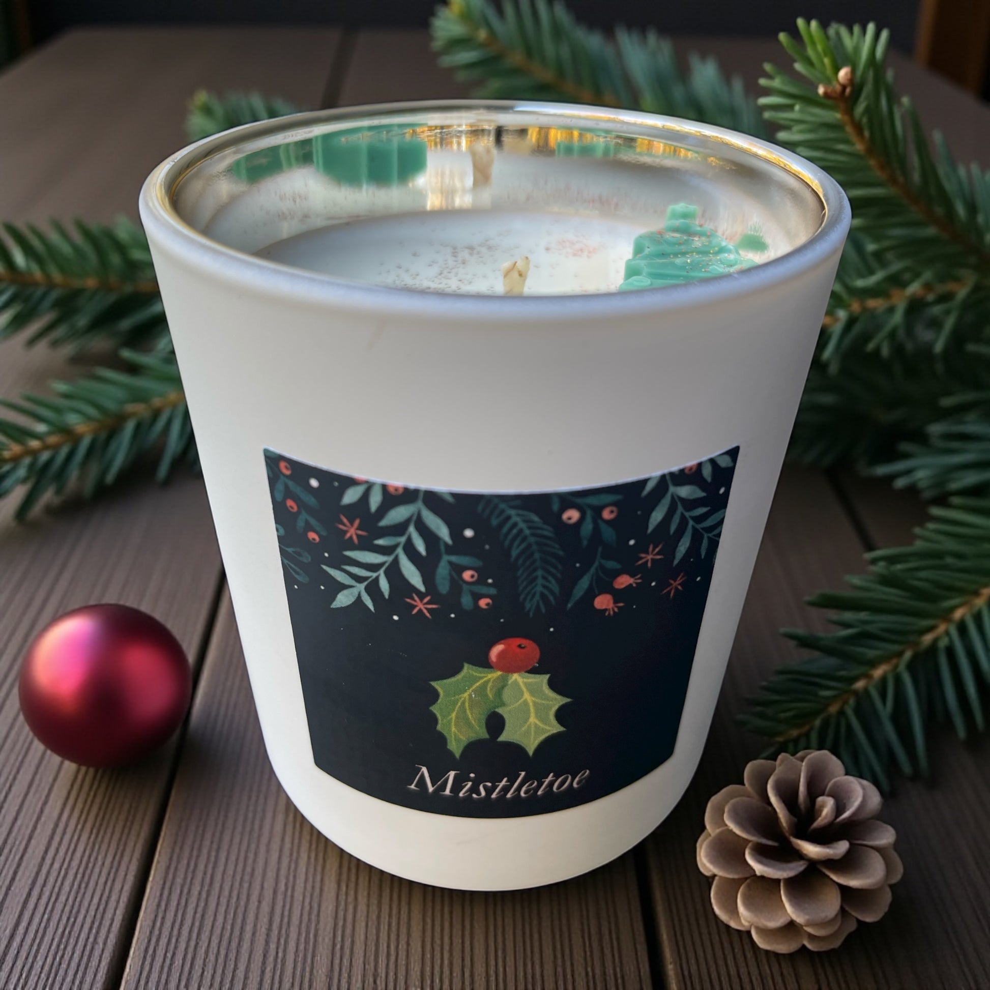 Capture the magic of the holidays with our Mistletoe candle, a refreshing blend of crisp pine and invigorating eucalyptus. This enchanting fragrance brings the outdoors in, combining the woodsy aroma of fresh pine boughs with the cool, spa-like notes of eucalyptus. Perfect for creating a festive atmosphere that's both traditional and refreshingly modern.